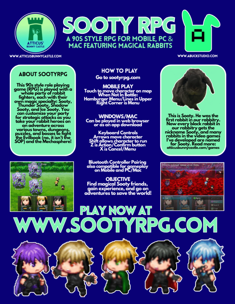 Today at the 102nd National American Rabbit Breeders Association (ARBA) Convention in Indianapolis, IN, Sooty RPG won 1st place for rabbit games! We are so proud of our award winning RPG featuring magical rabbit warriors.